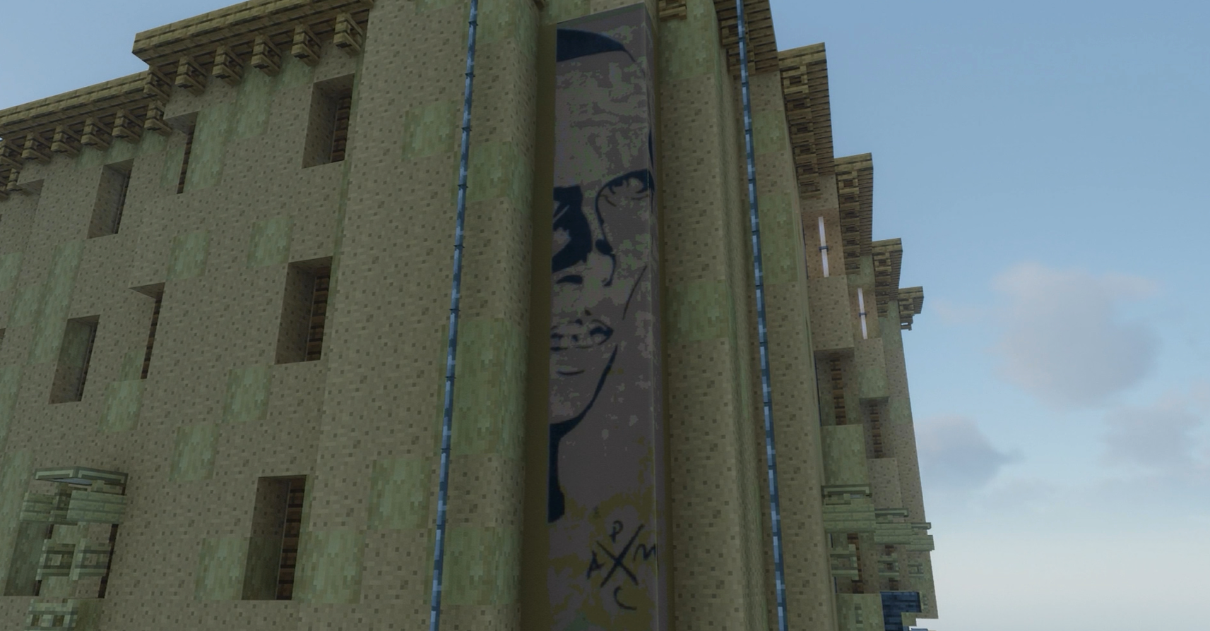 После уничтожения портрета Хармса за дело взялись настоящие градостроительные профессионалы. Они вернули граффити на фасад Маяковского, 11. В Майнкрафте!