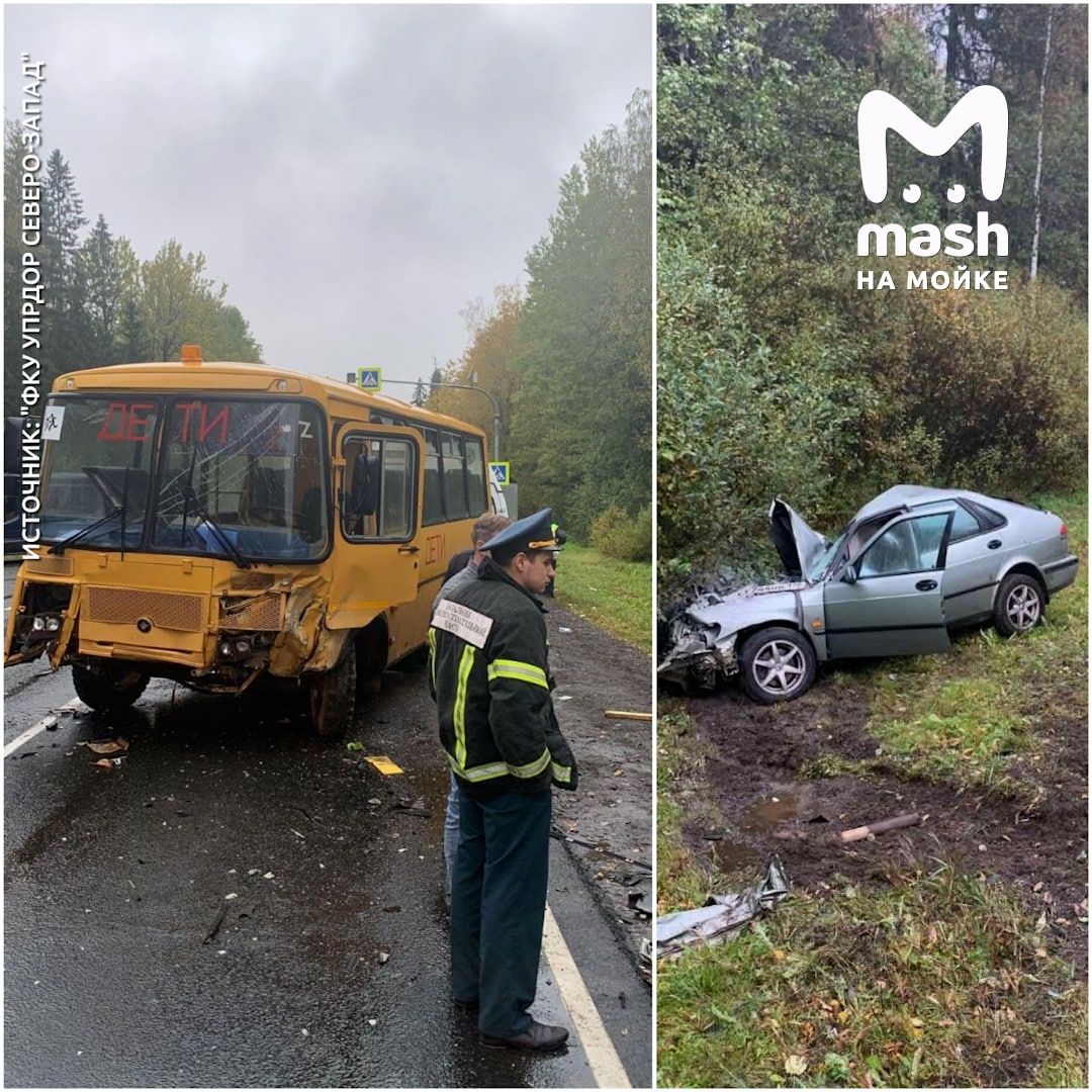 Школьный автобус лоб в лоб столкнулся с легковушкой рядом с Форносово — предварительно, пострадали четверо детей и двое взрослых.
