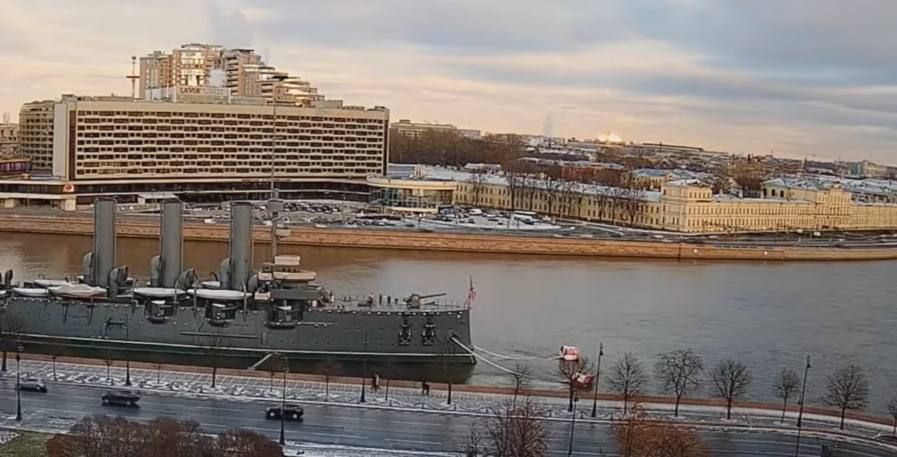 Мирный день близится к закату, но на горизонте за домами появляется пугающе высокий столб огня.