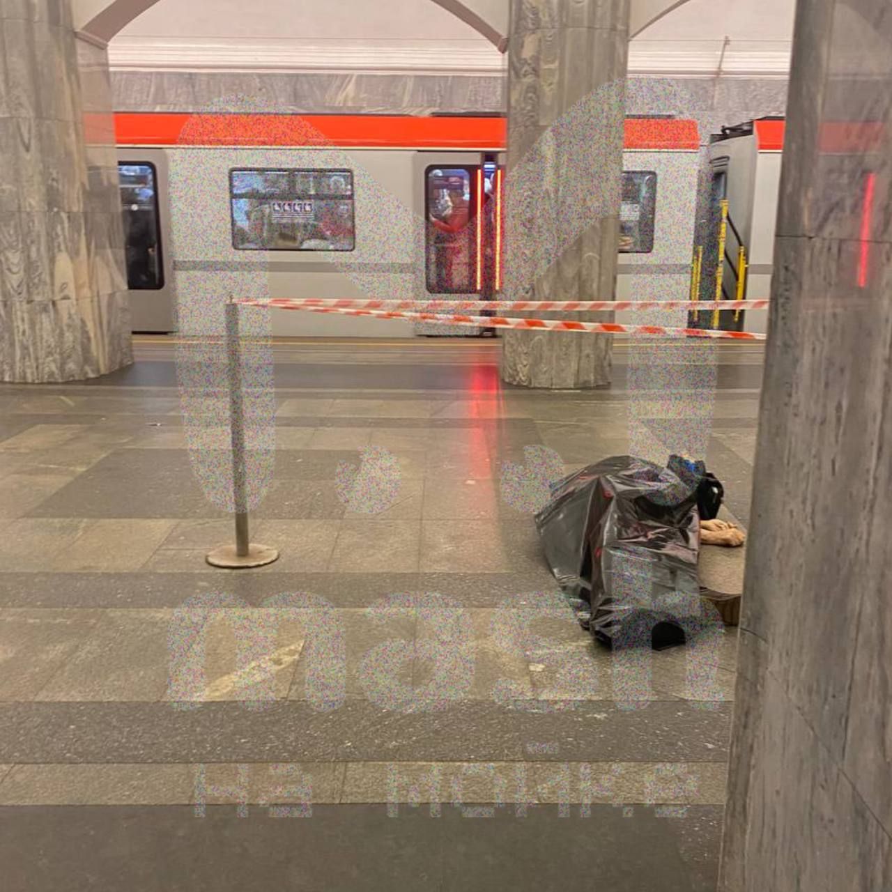 На перроне "Балтийской" лежит тело человека в патологоанатомическом мешке — фотографию только что сделал наш подписчик.