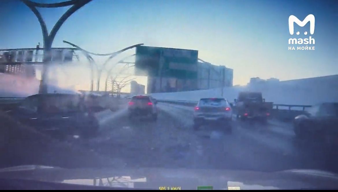 Видео момента массового ДТП на ЗСД: перед столкновением водителей слепило непривычно яркое для Питера солнце, а в средней полосе нежданчиком стоял человек рядом с авто на аварийке.