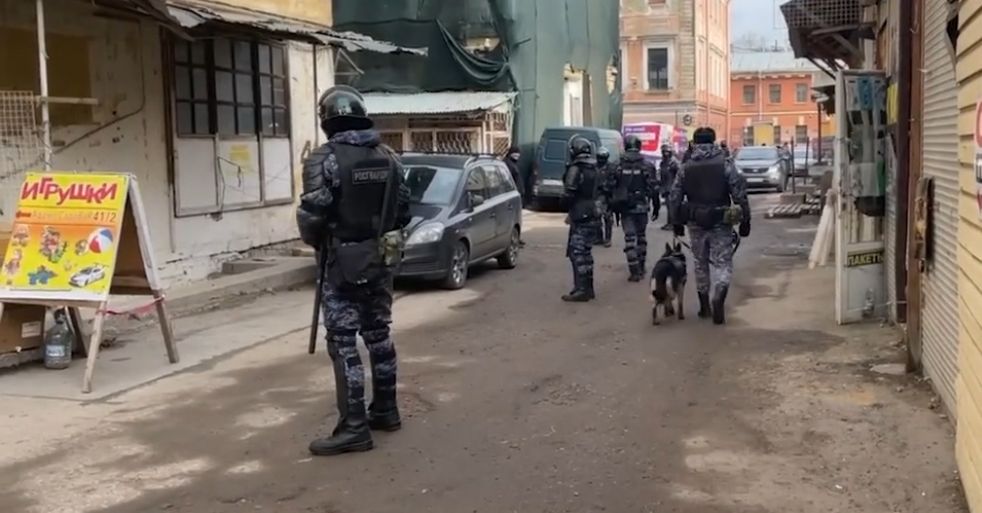 Росгвардия оцепила Апраксин двор — внутри рынка работают силовики, кинологи и представители правительственных комитетов. Проводятся профилактические мероприятия по проверке арендаторов и законности их бизнеса.