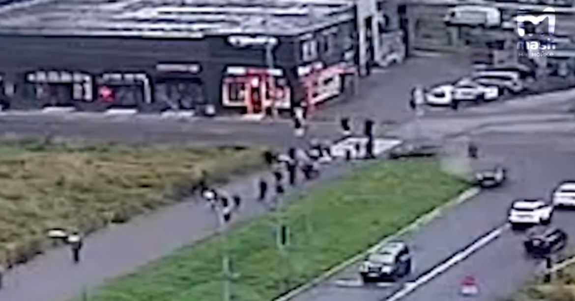 Судя по кадрам, авто на высокой скорости катило по перекрёстку, где случилось столкновение с другой машиной. Затем его откинуло в людей и далее на зелёную зону.