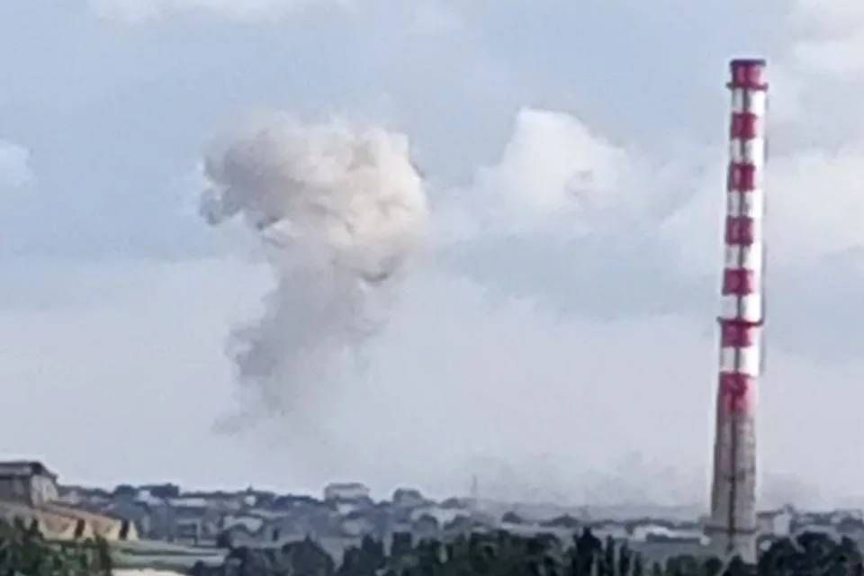На видео попал звук взрыва в Таганроге. После этого люди увидели в небе дым.