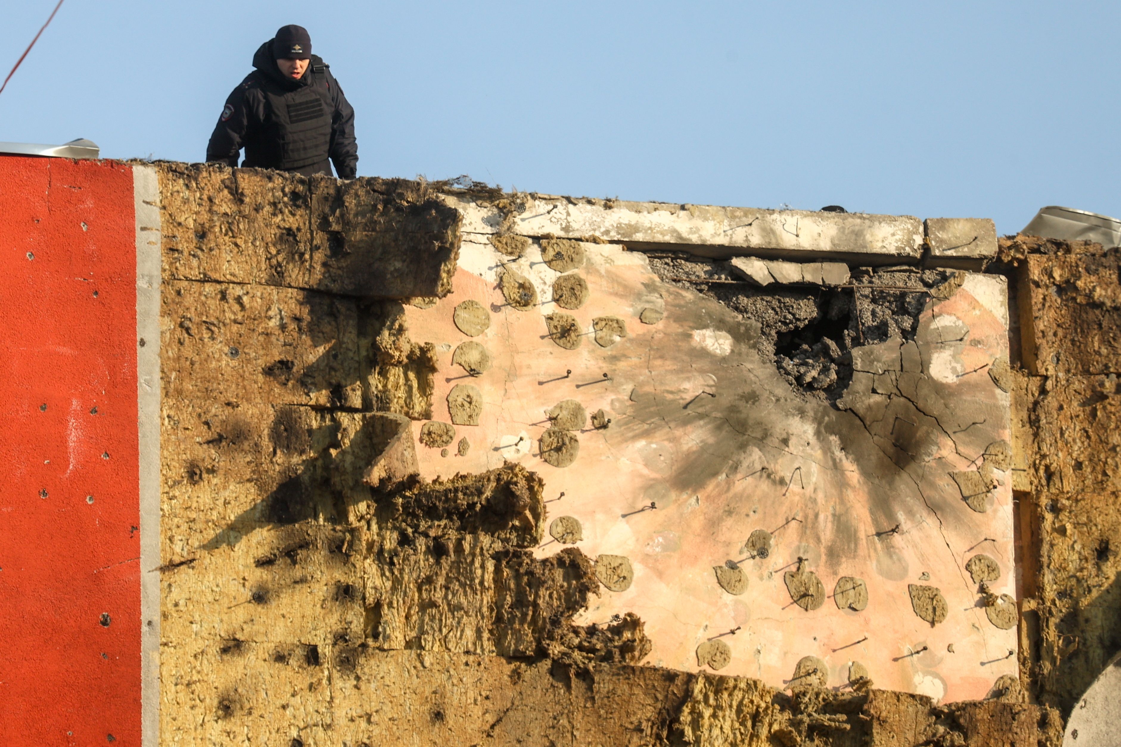 По данным Mash, это 37-летний охранник. Во время прилёта он курил на улице. Его и ещё двух человек ранило поражающими элементами (шарики диаметром около 7 мм), которыми были начинены украинские дроны. Первый скончался на месте, второй и третий выжили, их госпитализировали.