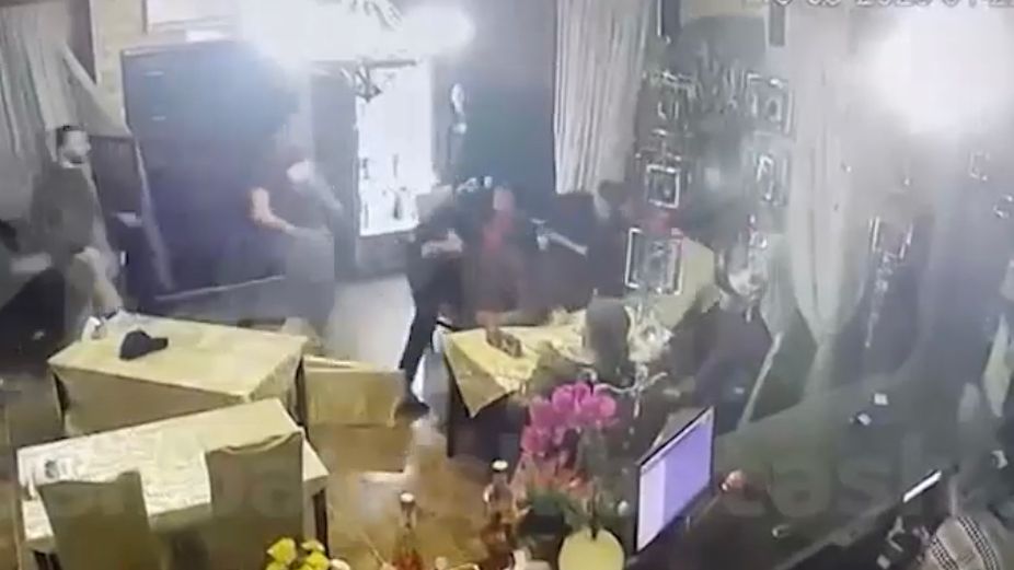 С этих слов начался фестиваль ультранасилия в баймакском кафе "Зуфар". Чуть предыстории: один из отдыхавших на втором этаже поссорился с дамой. Стал срываться на других посетителях — сильное заявление вначале как раз принадлежит ему. Услышал комментарий от парня из другой компании, ответил кулаками. С обоих сторон вступились друзья — первозданный хаос из тел на видео.