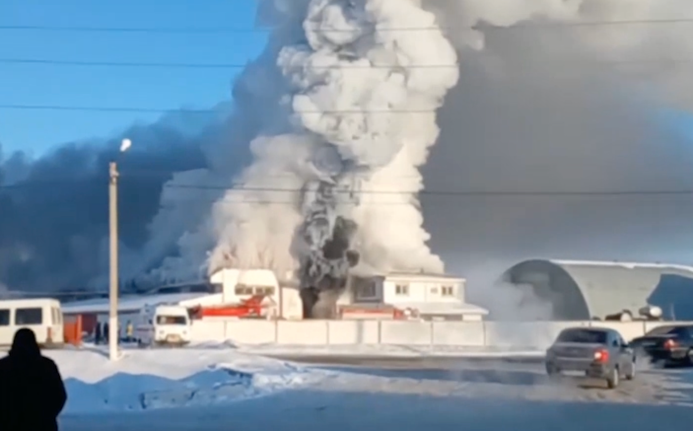 Строймагазин полыхает в Раевке Альшеевского района — в огне, предварительно, 1000 квадратов.