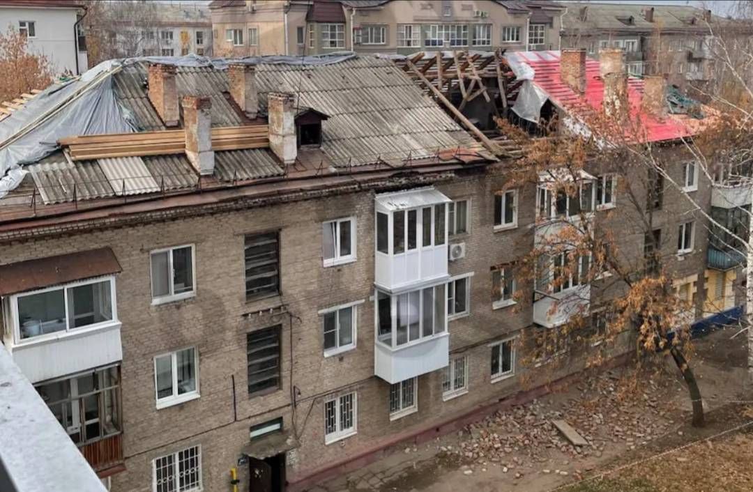 Рабочие латали кровлю, но что-то пошло не так — материалы с грохотом упали на землю. Прохожих у дома не было — никто не пострадал.