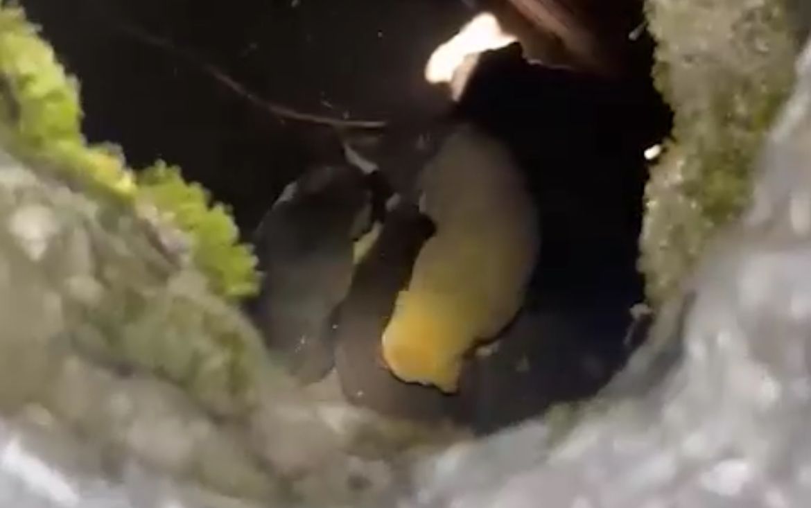 Малышей сначала пытались достать прохожие, услышавшие жалобный вой из-под земли. Щенята застряли в яме на глубине около двух метров, так что пришлось вызывать помощь. Специалисты МЧС пробили лаз кувалдой, забрались внутрь, вытащили скулящих пушистиков и сразу передали маме под тёплый бок. К ветеринарам обращаться не понадобилось.