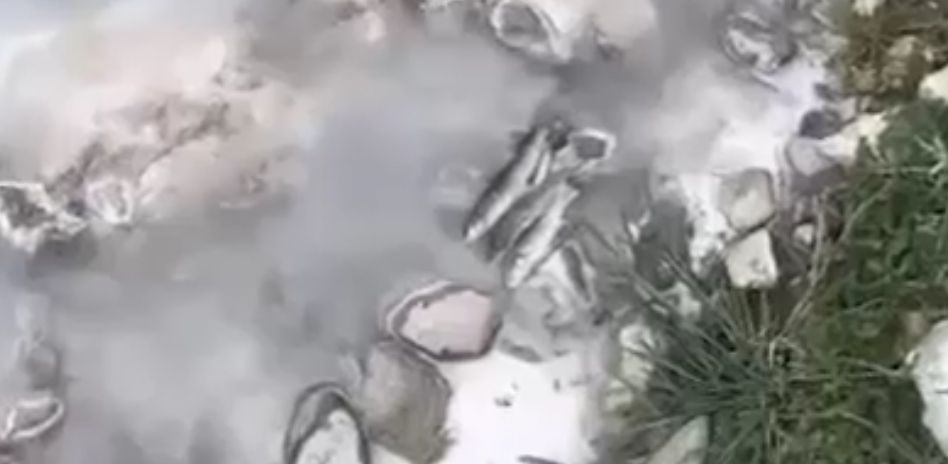 Рыба массово гибнет в дагестанской реке из-за известняка.