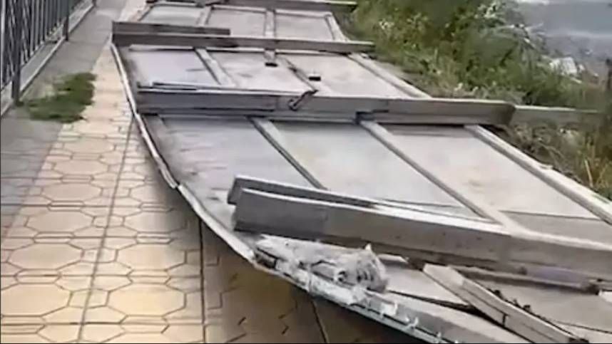 Последствия шторма в Кизляре и Каспийске — рухнувшие крыши, вывернутые заборы, всюду листы кровельного железа.