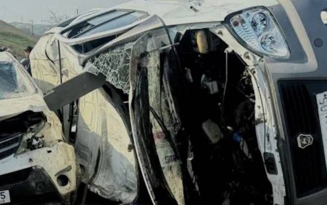 Маршрутка с людьми, Камаз и ещё две легковушки столкнулись в Кумторкалинском районе Дагестана. Пострадали 14 человек.