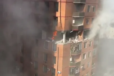 Момент взрыва в махачкалинской многоэтажке на Гапцахской улице.